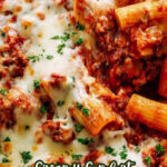 This Baked Rigatoni recipe features al dente rigatoni pasta coated in a rich tomato cream sauce infused with Italian sausage, bell peppers, garlic, and aromatic herbs. Topped with melted mozzarella and Parmesan cheese, it is baked to golden, bubbly perfection, making it a hearty and satisfying family-friendly dinner.