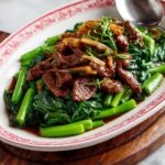 This Beef in Oyster Sauce recipe features tender marinated flank steak stir-fried with crisp bok choy and sweet onions, coated in a savory oyster sauce blend. Quick to prepare and cook, it's perfect served over rice or noodles for a flavorful Asian-inspired meal.