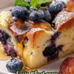 - Don’t Thaw Frozen Blueberries: Using frozen berries straight from the freezer prevents the casserole from becoming too watery—trust me, it makes a big difference.