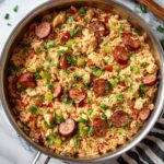 This One Pan Jambalaya recipe is a flavorful and hearty dish featuring tender chicken, spicy andouille sausage, and a medley of vegetables cooked with rice and Cajun seasonings all in one skillet. Perfect for a satisfying weeknight dinner with minimal cleanup.