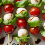 Caprese Skewers are a fresh and colorful appetizer featuring cherry tomatoes, fresh basil, and mini mozzarella balls drizzled with extra-virgin olive oil and balsamic glaze, seasoned with kosher salt and black pepper. Perfect for a light, elegant starter or party snack.
