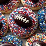 Shortbread Thumbprint Cookies with Chocolate Footballs are buttery, festive treats perfect for holidays or special events. The cookie dough is rolled in colorful nonpareil sprinkles and topped with handcrafted chocolate footballs, making them visually appealing and delicious. The combination of tender shortbread and rich chocolate creates a delightful flavor and texture contrast.