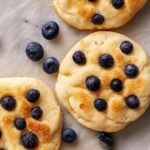 - Shape and Add Blueberries: Scoop spoonfuls of the batter onto the prepared baking sheet to form cloud-shaped breads. Top each with fresh blueberries gently pressed into the batter.