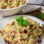 Cranberry Couscous Salad is a fruity and nutty side dish combining tender couscous with dried cranberries, toasted pecans, fresh herbs, and a tangy honey vinaigrette. This chilled salad is easy to prepare and pairs wonderfully with poultry and pork dishes.