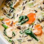 A creamy and hearty Chicken Wild Rice Soup loaded with vegetables and tender shredded chicken, perfect for a comforting and satisfying meal on cold days.