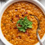 This hearty Lentil Curry is a comforting one-pot meal bursting with protein-packed lentils, aromatic spices, and creamy coconut milk. Perfectly balanced with fresh ginger, garlic, and a touch of heat from cayenne pepper, this dish offers rich flavors and a wholesome texture. Serve it with basmati rice and vegan naan for a satisfying vegan dinner that’s both nutritious and delicious.