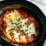 - Garnish and Serve: Once cooked, garnish with chopped fresh basil or parsley. Cut into portions and serve warm. Enjoy your easy crockpot lasagna!