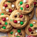 Santa's Cookies are soft and chewy double chocolate chip cookies loaded with festive red and green M&M candies and white chocolate chips. Made with instant vanilla pudding mix for extra moisture and richness, these holiday treats are perfect for sharing or gifting during the season.
