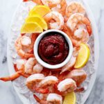 - Assemble and Serve: On a serving platter, arrange crushed ice cubes. Place the chilled shrimp on top of the ice and garnish with lemon wedges. Serve the cocktail sauce on the side chilled for dipping.