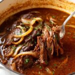 This French Onion Pot Roast features a tender chuck roast slow-baked in a savory, rich gravy infused with sweet caramelized onions, garlic, herbs, red wine, and Worcestershire sauce for melt-in-your-mouth flavor perfect for a comforting dinner.