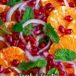 It’s best served fresh, but you can prepare all components ahead except for the dressing and assembling. Store the sliced oranges, pomegranate seeds, and onions separately in the fridge and dress right before serving.