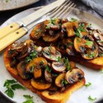 Mushroom Bruschetta is a delicious appetizer featuring perfectly cooked chestnut mushrooms sautéed in butter and garlic, served on toasted sourdough bread with fresh parsley and thyme for a flavorful and satisfying snack or light lunch.
