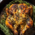 This herb-roasted spatchcock chicken is a flavorful and juicy main course perfect for a weeknight meal. It features a whole chicken flattened for even cooking, seasoned with fresh herbs and butter for a crispy, golden skin and tender meat.