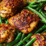 Lemon Garlic Butter Chicken and Green Beans Skillet features tender chicken thighs and crisp steamed green beans coated in a rich, savory lemon garlic butter pan sauce. This one-skillet, low-carb meal is simple, flavorful, and perfect for a quick dinner.