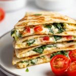 Mediterranean Quesadillas are a simple, healthy, and delicious recipe combining fresh diced tomatoes, red onion, spinach, feta, and mozzarella cheeses stuffed inside warm burrito-style tortillas. Ready in just 15 minutes, these quesadillas make a perfect nutritious lunch or quick weeknight dinner option.