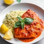 This One Pan Mediterranean Chicken with Roasted Red Pepper Sauce is a flavorful and creamy dish featuring tender chicken thighs cooked in a rich roasted red pepper and cream sauce, garnished with feta cheese and fresh basil. Perfect for a quick and delicious dinner ready in under 30 minutes.