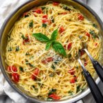 This One Pan Pasta recipe is a quick, flavorful dish combining linguine, cherry tomatoes, baby spinach, and fresh basil all cooked together in a single pan for easy preparation and minimal cleanup. Finished with a touch of Parmesan cheese, it’s perfect for a hearty yet simple meal.