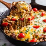 - Finish with Cheese and Toppings: Sprinkle shredded colby jack cheese over the rice and chicken, then cover to let the cheese melt. Once melted, remove from heat and top with diced avocado, tomatoes, and parsley or cilantro as desired.