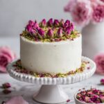 Persian Love Cake is a delicate and aromatic almond cake infused with cardamom, lemon zest, rosewater, and vanilla. This moist and tender cake is topped with a tangy lemon glaze, crunchy pistachios, and fragrant dried rose petals, making it a perfect treat for special occasions or a sophisticated dessert.
