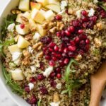 A vibrant and festive Pomegranate Arugula Quinoa Salad that combines nutty quinoa, tangy pomegranate seeds, crisp apples, crunchy walnuts, and creamy feta, dressed with a zesty balsamic vinaigrette. Perfect for holiday gatherings or a refreshing nutritious meal.