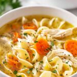 A comforting and hearty homemade crockpot chicken noodle soup recipe that combines tender chicken breasts, fresh vegetables, and wide egg noodles simmered in flavorful chicken broth, perfect for an easy and satisfying meal.