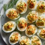 Classic Southern Deviled Eggs are a creamy and tangy appetizer perfect for family gatherings and holiday parties. Made with hard-boiled eggs, Dijon mustard, mayonnaise, and dill relish, these bites offer a perfect balance of flavors topped with a sprinkle of paprika for that authentic southern touch.