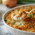 - Bake the Casserole: Place the baking dish in the preheated oven and bake for 20 to 25 minutes until shrimp are cooked through and the top is golden brown. Optionally, broil the casserole for a few minutes to brown the top further, watching carefully to avoid burning.