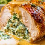 A delicious and creamy Spinach Stuffed Chicken Breast recipe featuring tender chicken breasts filled with a flavorful mixture of fresh spinach, cream cheese, feta, and mozzarella, seasoned with a blend of paprika, cumin, and chili powder, then baked to perfection.