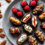 - Snickers Style: Fill each date with 1 teaspoon of creamy peanut butter and a pinch of finely chopped roasted salted peanuts. Dip the stuffed dates into melted dark chocolate, then top with additional chopped peanuts while the chocolate is still wet.