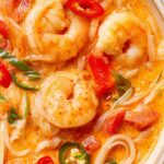 This easy one-pot Thai Shrimp Soup with Noodles combines tender shrimp, creamy coconut milk, vibrant Thai red curry, and fresh vegetables for a flavorful and comforting meal ready in just 15 minutes.