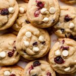 Soft-Baked White Chocolate Cranberry Cookies are chewy, tender cookies featuring sweet white chocolate chips and tart dried cranberries, enhanced with vanilla and a perfect soft-baked texture. These cookies are chilled before baking to prevent spreading, yielding a thick, melt-in-your-mouth treat ideal for any cookie lover.